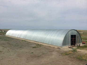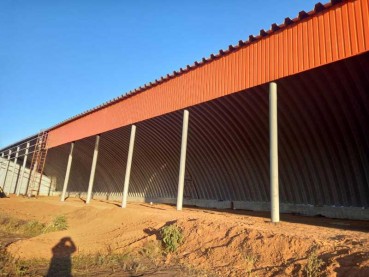 Зернохранилище площадью 1800 м2. Высота фундамента-1,2 м. Срок возведения-45 дней.